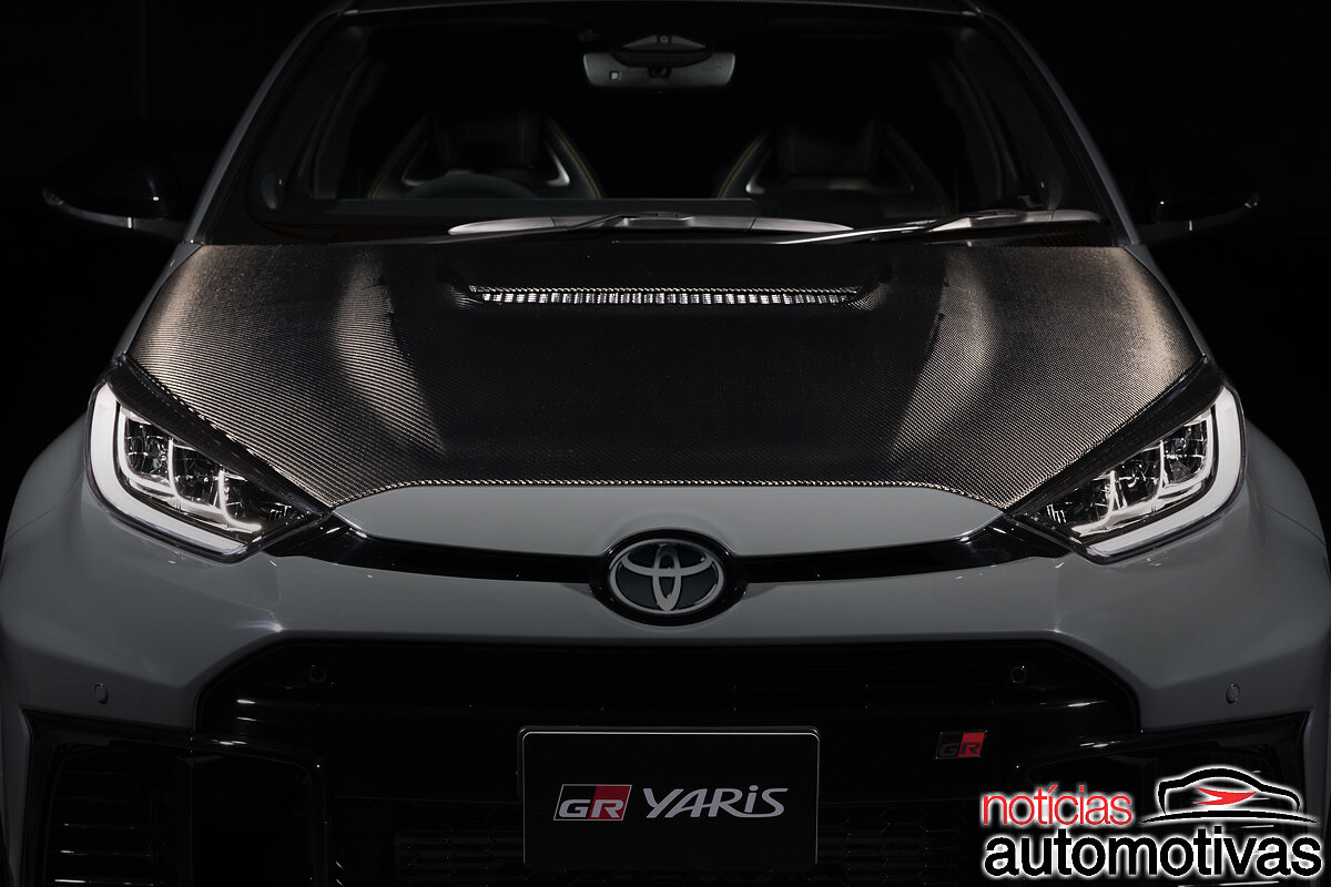 Já o exterior também conta com spoiler dianteiro, saias laterais e capô do motor em fibra de carbono. A cor externa é o “Gravel Khaki”, assinatura da Morizo, exclusiva do GR Yaris.