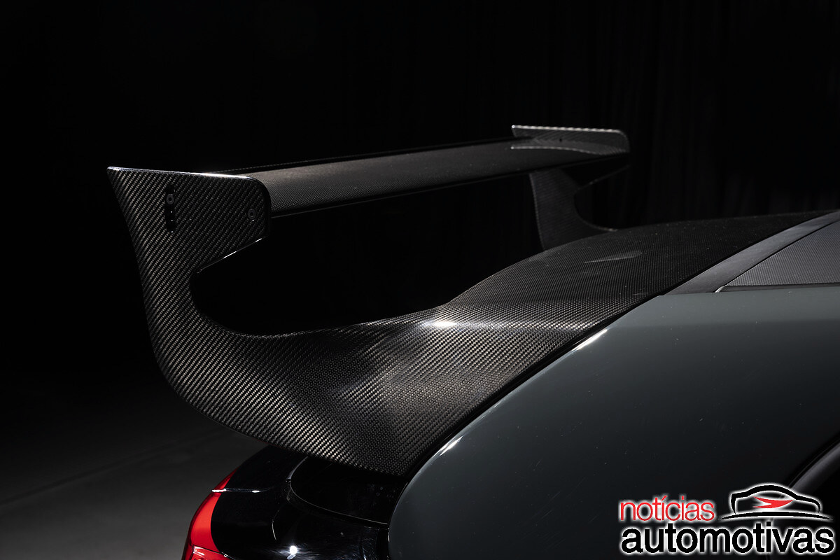 O GR Yaris Morizo RR apresenta uma asa traseira em fibra de carbono desenvolvida para a corrida de resistência de 24 Horas de Nurburgring como um componente aerodinâmico exclusivo.