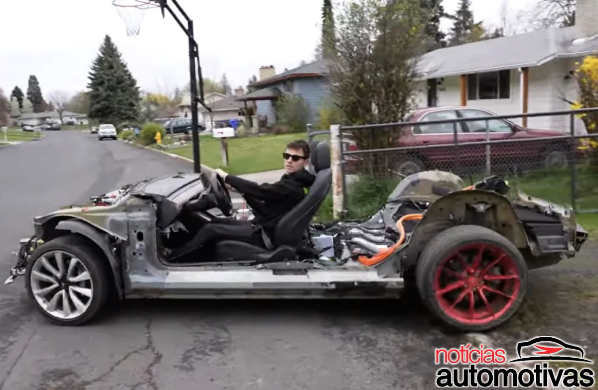 Foi exatamente isso que Remmy Evans descobriu ao colocar as mãos em um Tesla Model 3 praticamente reduzida a um esqueleto, sem painéis de carroceria, sem para-brisa e sem cintos.
